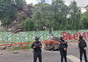 La zona donde cayó la roca se encuentra acordonada, ya se encuentran laborando en el lugar para su mitigación trabajadores de la Alcaldía Gustavo A. Madero.