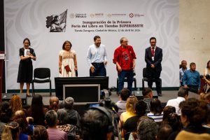En su participación, el director del FCE, Paco Ignacio Taibo II, dijo que esta Feria tiene un valor, sin duda, pero aquí hay un fenómeno subterráneo que tiene mucho más valor, que es que con esta Feria se cierre un primer ciclo mediante el cual montamos, junto con el ISSTE, una cadena de librerías chiquititas, micro librerías en algunos casos, en 45 tiendas del superISSSTE.