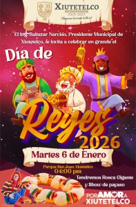 Con el objetivo de preservar las tradiciones y fortalecer la convivencia familiar, el Presidente Municipal de Xiutetelco, Ing. Baltazar Narciso Baltazar, extiende una invitación a todas las familias del municipio para ser parte del festejo del Día de Reyes 2026, una de las celebraciones más esperadas por las niñas y los niños.