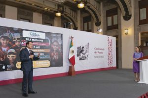 El secretario de Educación Pública, Mario Delgado Carrillo explicó que el Gobierno de México implementa programas, fortalece la infraestructura y realiza acciones en beneficio de 20.2 millones de niñas y niños inscritos en 203 mil 600 escuelas públicas, como: