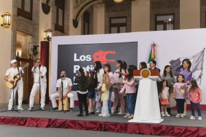 En la conferencia matutina, a la que asistieron niñas y niños invitados, se presentó la agrupación de rock infantil “Patita de Perro” quien interpretó “Vamos a brincar” y “Chin-chin el que se mueva”.
